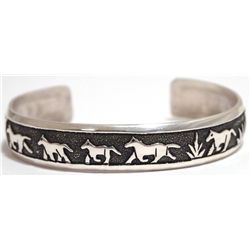 Navajo Sterling Silver Horses Cuff Bracelet - Tommy Singer