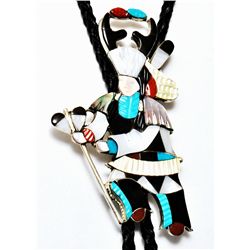 Zuni Multi-Stone Kachina Sterling Silver Bolo Tie - Jonathan Beyuka