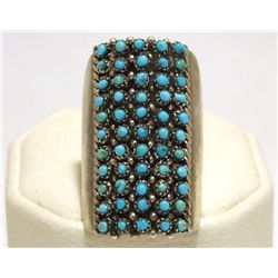 Zuni Turquoise Dots Sterling Silver Men's Ring - Peter & Vivian Haloo Face measures 1-3/8" tall by 3/4" wide/around. Band measur...