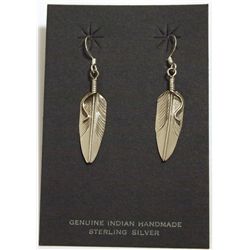 Navajo Sterling Silver Feather French Hook Earrings - Chris Charley