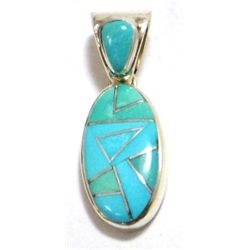 Navajo Turquoise Oval Sterling Silver Pendant - Calvin Begay Measures 1-1/4" tall by 1/2" wide. Weight: 4.9g SKU: pp0518 ------------...