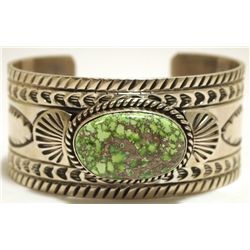 Old Pawn Navajo #8 Turquoise Sterling Silver Cuff Bracelet - Harrison Jim
