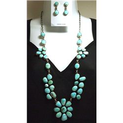 Navajo Kingman Turquoise Sterling Silver Long Necklace & Earrings Set - Raymond Beard