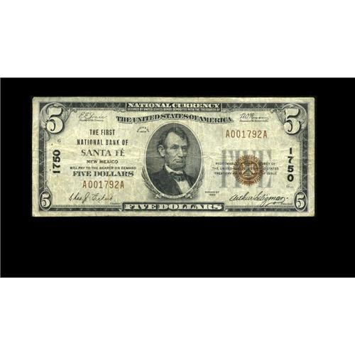 Santa Fe, NM - $5 1929 Ty. 1 The First NB Ch. # 1750A p Santa Fe, NM