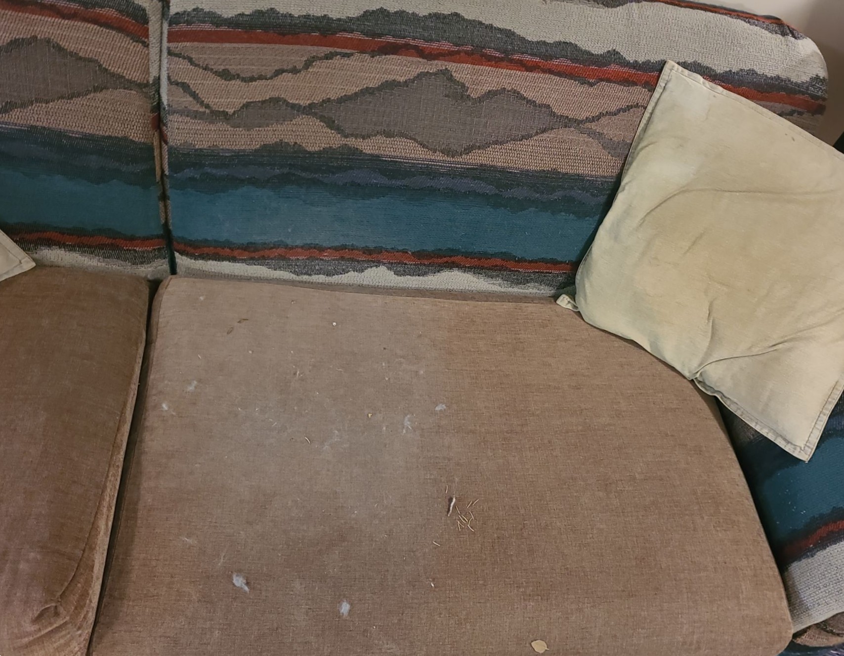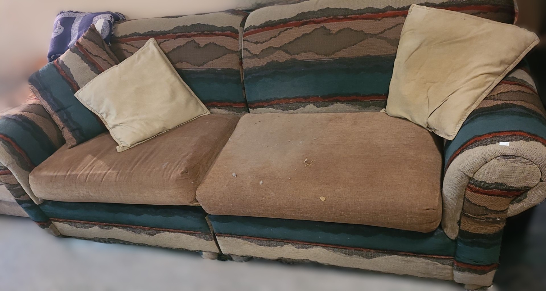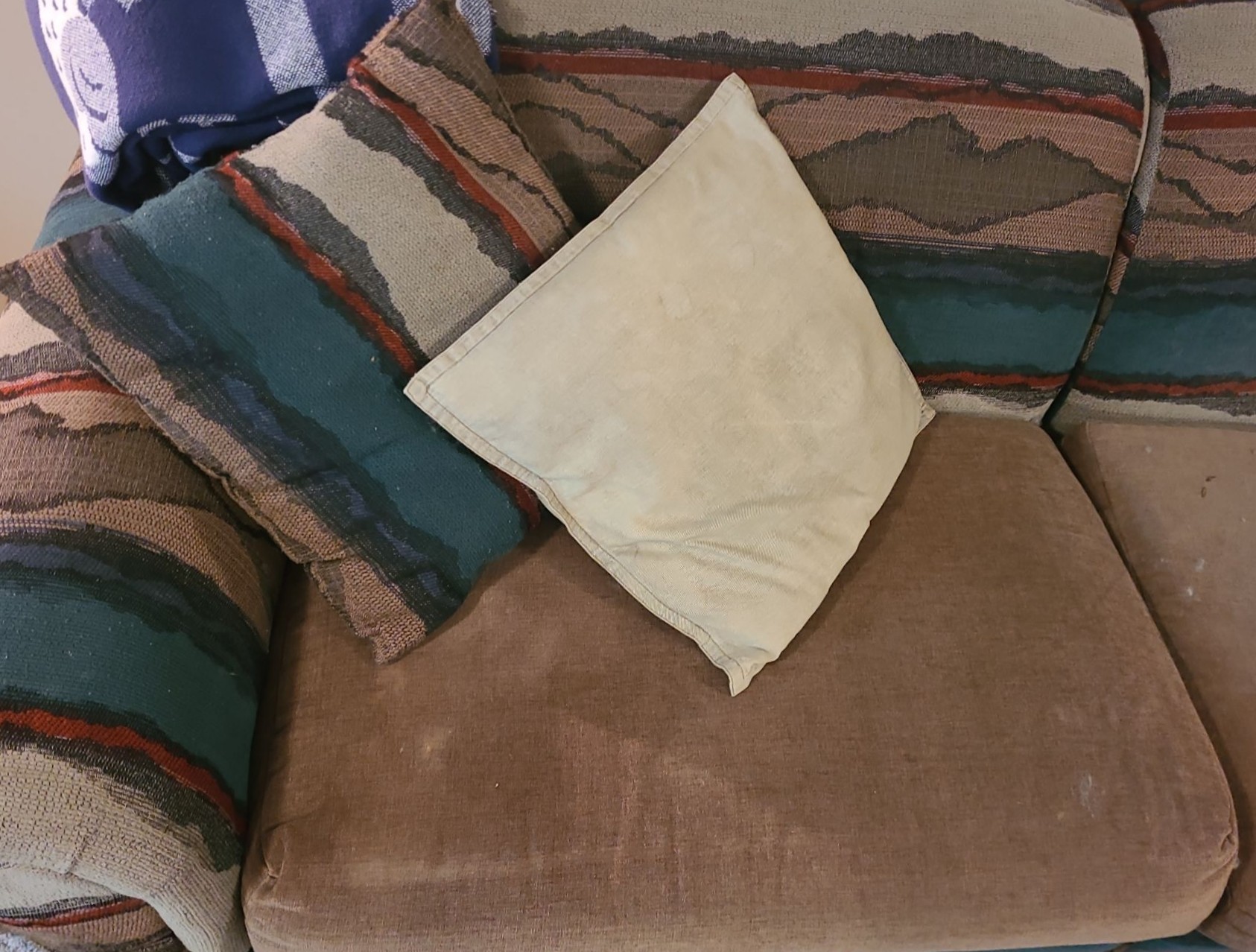 Main Cushions Recovered in Brown Fabric, Bring Assistance