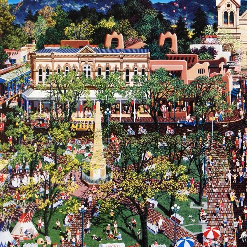 Alexander Chen creates stunningly detailed masterpieces filled with elaborate icons and a touch of fantasy. "Santa Fe" is a limited edition offset lithograph on paper by Alexander Chen, numbered and hand signed by the artist. Includes Certificate of Authenticity! Measures approx. 23.5" x 17.5" (with border), 21" x 15" (image).