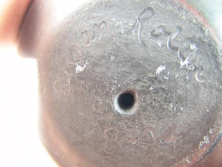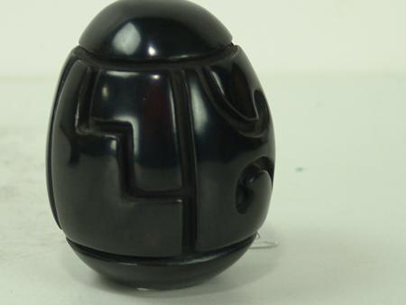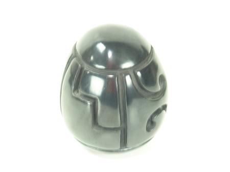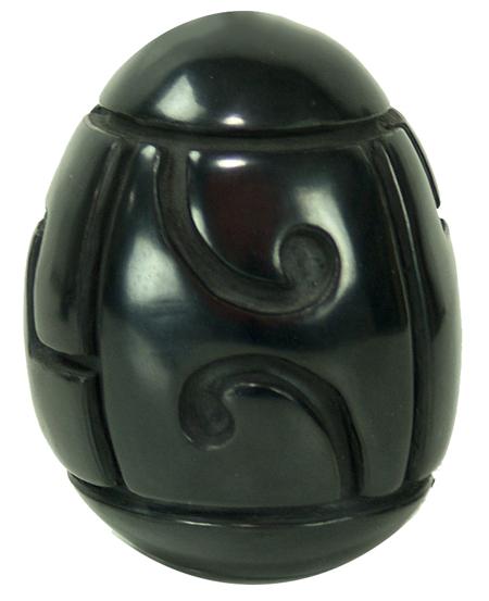 Circa 1994, Beautiful egg-shaped blackware vessel with deep carved traditional motif. Very good condition. 3-1/2" x 2-1/4"