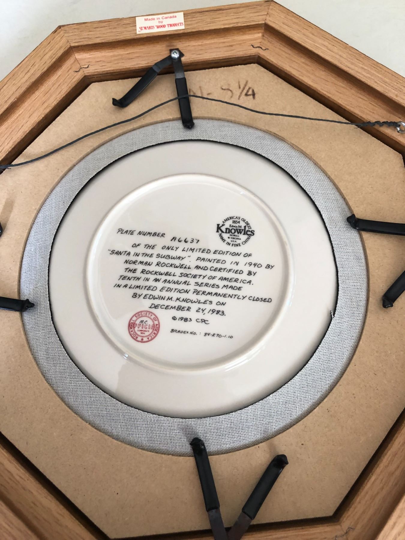 "Santa In The Subway" Painted In 1940 By Norman Rockwell Made In Limited Edition Permanently Closed By Edwin M. Knowles In 1983