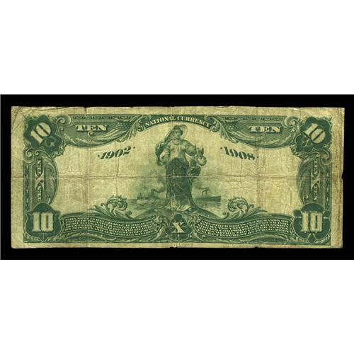 <B>Santa Maria, CA</B></I> - $10 1902 Date Back Fr. 616 <B>The First NB</B></I> Ch. # (P)7480<BR>Ten large outside of this note in the census for this bank that was gobbled up by the bank merger frenzy of the Bank of Italy in the late 1920s. Only traces of the cashier's signature remains. <B>Very Good-Fine.</B></I>