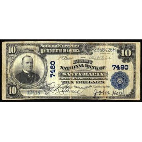 Santa Maria, CA. $10 1902. The FNB Ch #7480