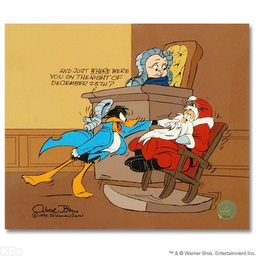 Own this amazing piece based on the original line image hand drawn and hand-inked on paper by Chuck Jones! "Santa on Trial" is a sold out limited edition animation cel with hand painted coloring on sericel outline, numbered and hand signed by Chuck Jones (1912-2002)! Includes Certificate of Authenticity! Measures approx. 13" x 11".
