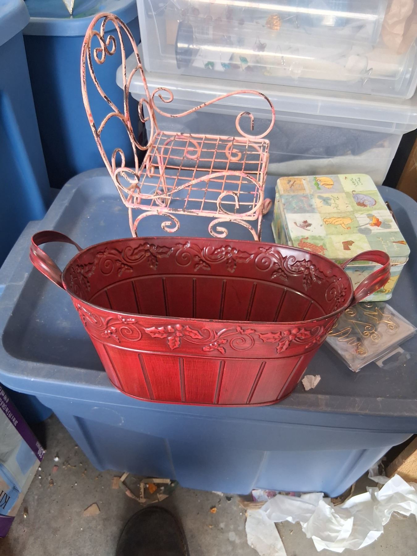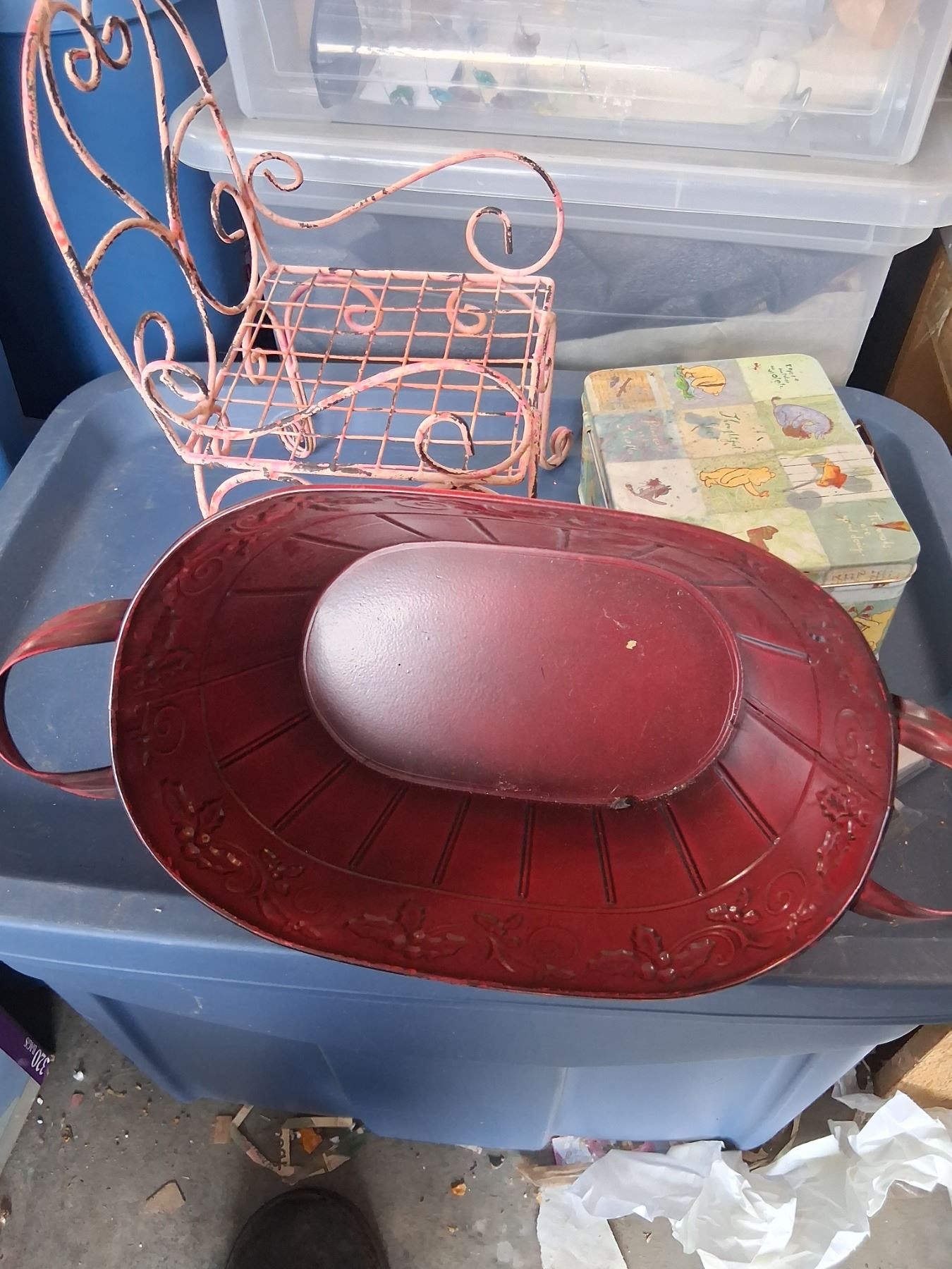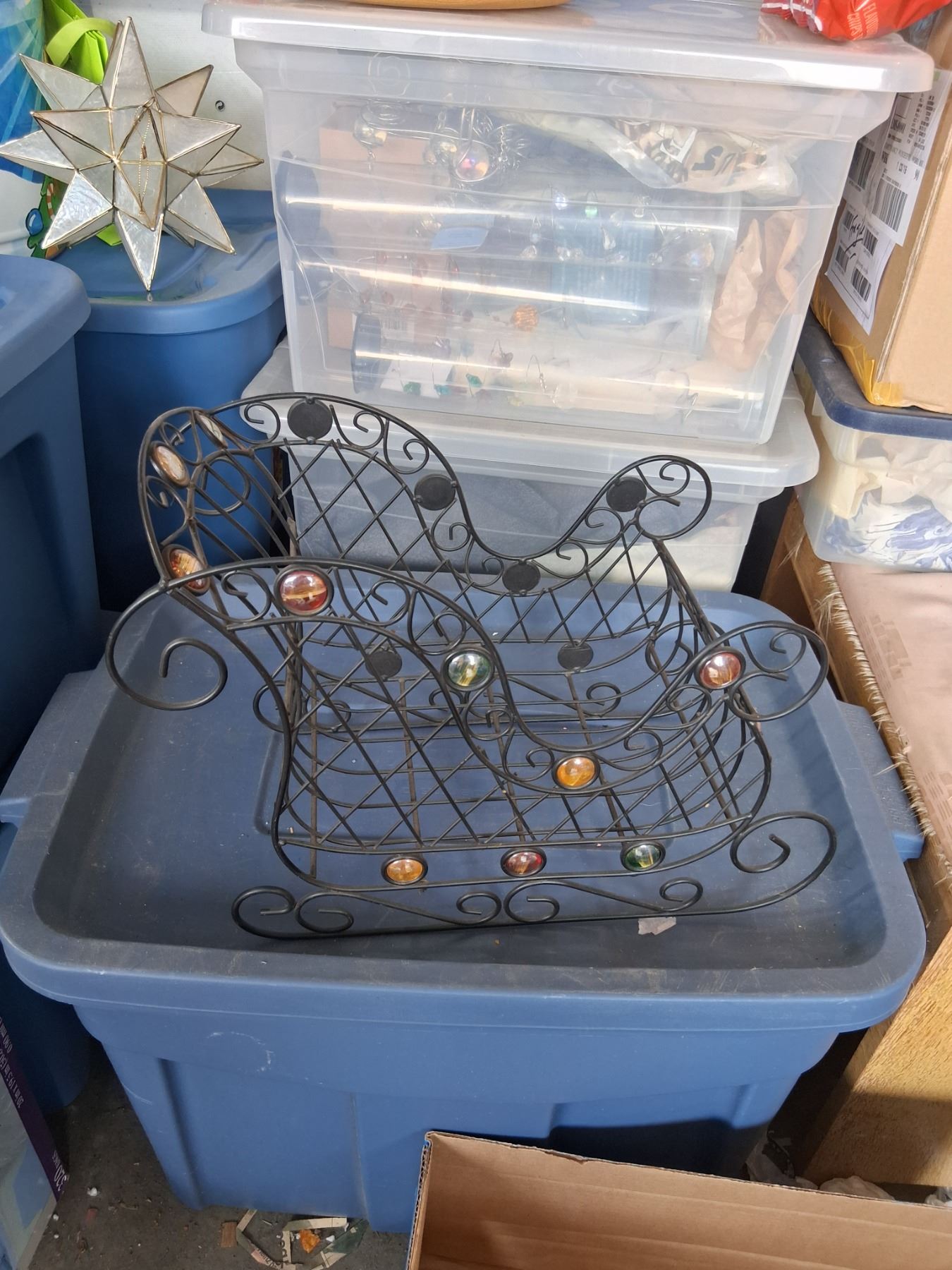 Santa's Sleight & Doll Chair plus more Lunch bucket Decorative metal tub