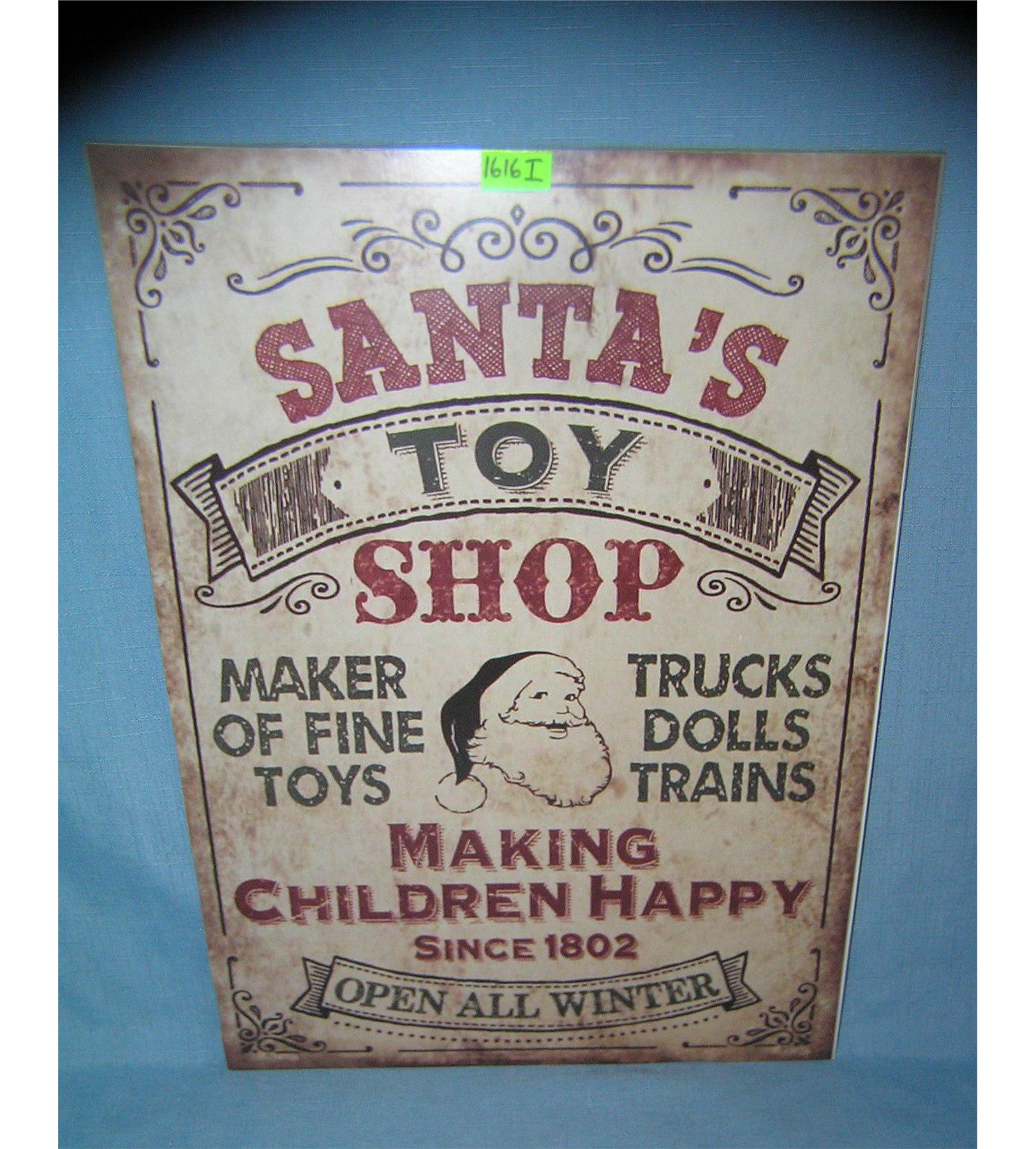 Santa's Toy Shop maker of fine toys retro style advertising sign 12 inches by 16 inches on board est. value $40.00-$50.00