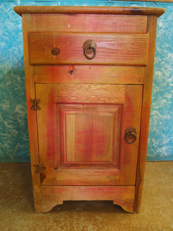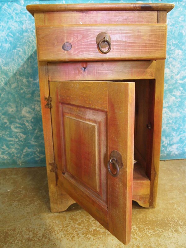 Sante Fe Style Wood Nightstand, drawer w/cupboard below, could work as a washstand as well, MUST PICK UP. Measures 17.5''x18.5''x32.5''. Buyers pay actual shipping and handling charges (see Terms and Conditions for more information.)
