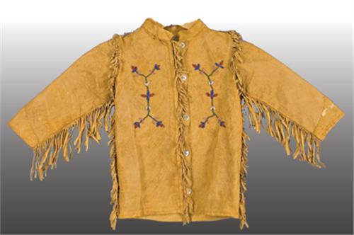 Santee Sioux Baby Jacket. 15 1/2" long. Dyed yellow. Typical beadwork. 19th century. (est $500-800)
