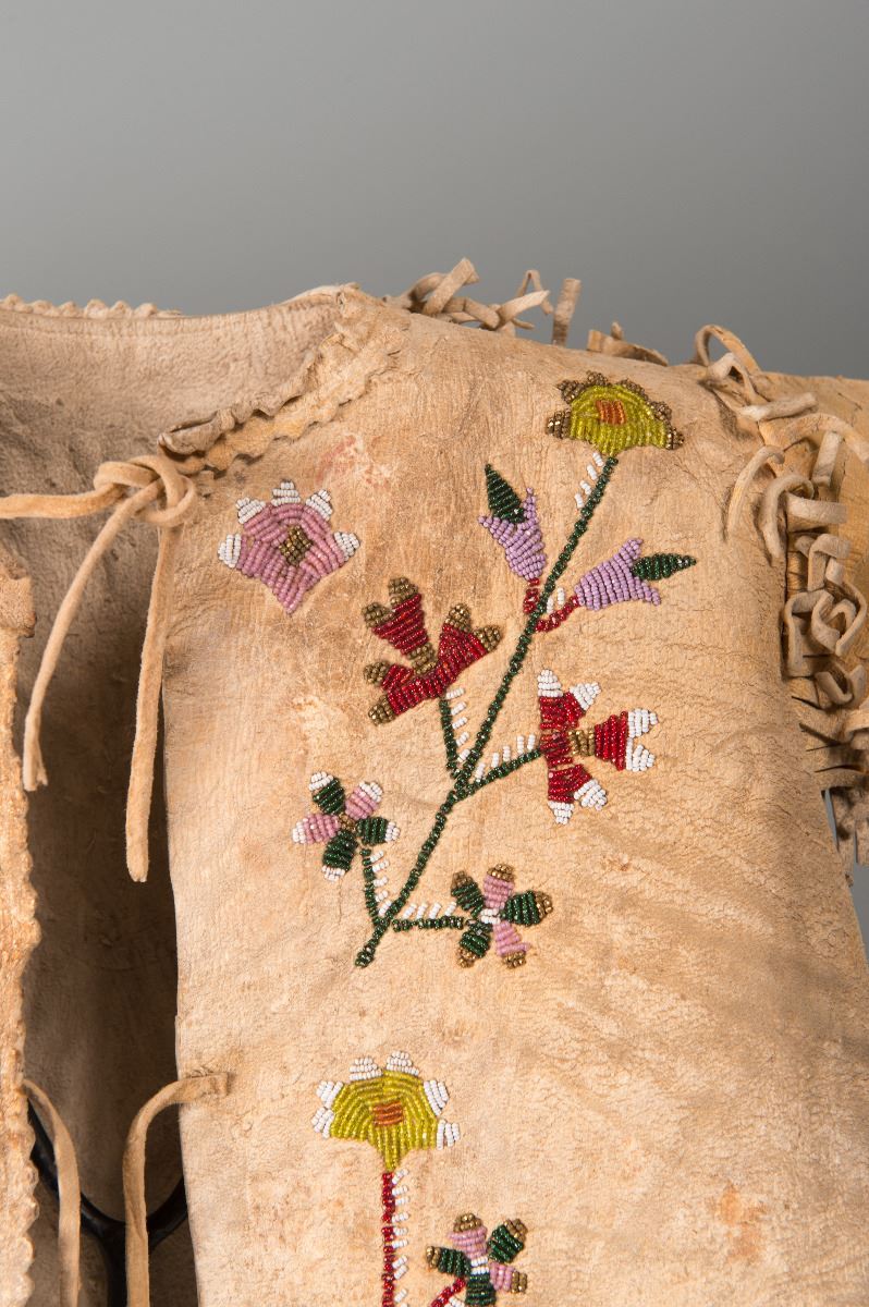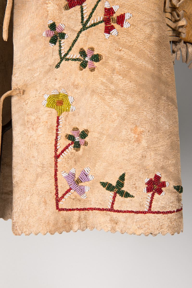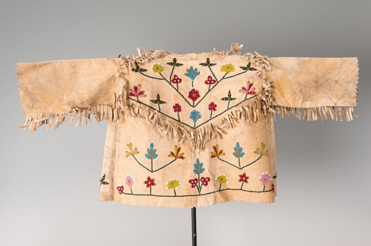 Santee Sioux Beaded Child's Coat. 13" x 11 ½", beaded in fine floral designs and accented with scalloped edges and fringe. Circa 1910.