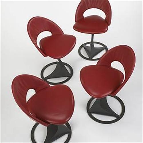 Santiago Calatrava chairs from the Tabourettli Theatre, set of four De Sede Spain/Switzerland, 1986 enameled steel, upholstery 17.75"w x 19"d x 29"h <BR>Literature: El Croquis No.38, October 1992, Santiago Calatrava 1983/1989, Calatrava et al., pg. 74 illustrates this design in situ