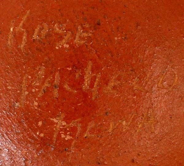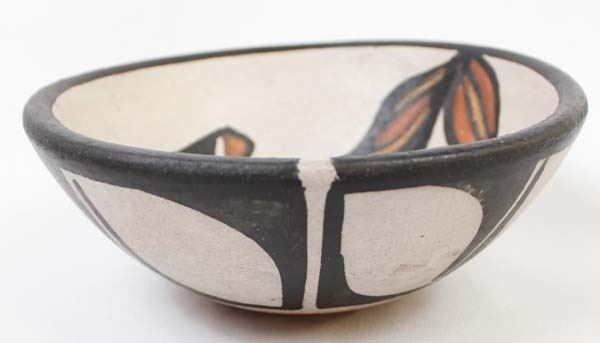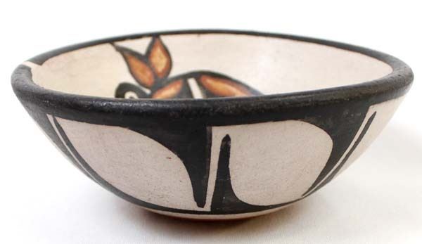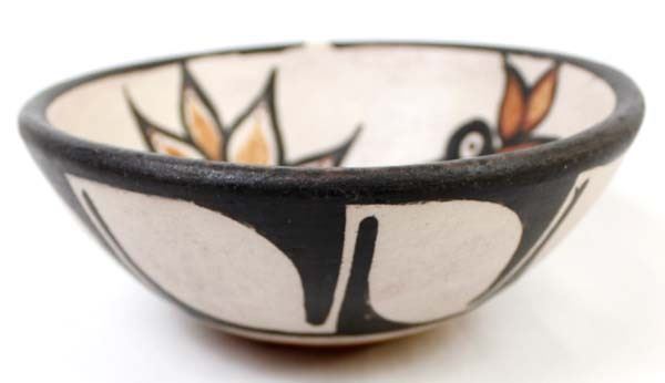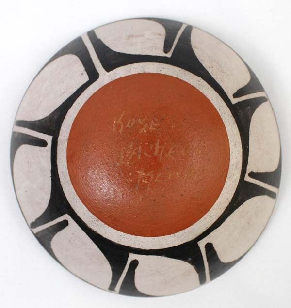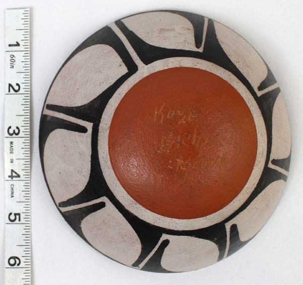 Native American Santo Domingo Kewa Hummingbird Pottery Bowl by Rose Pacheco (b. 1968), measures 6''D x 2''H and is signed on the bottom, very slight pressure crack inside of bowl near rim measuring about 1'', FYI: '' Rose has been actively making pottery since the late 1970's even though she was born in 1968. Although her works are considered contemporary, Rose describes herself as a traditional potter.''