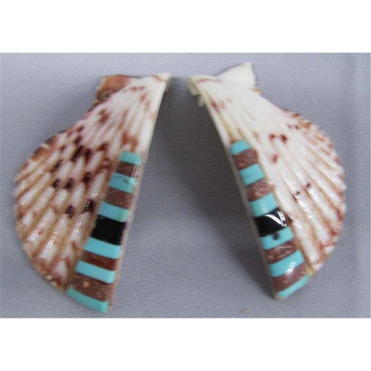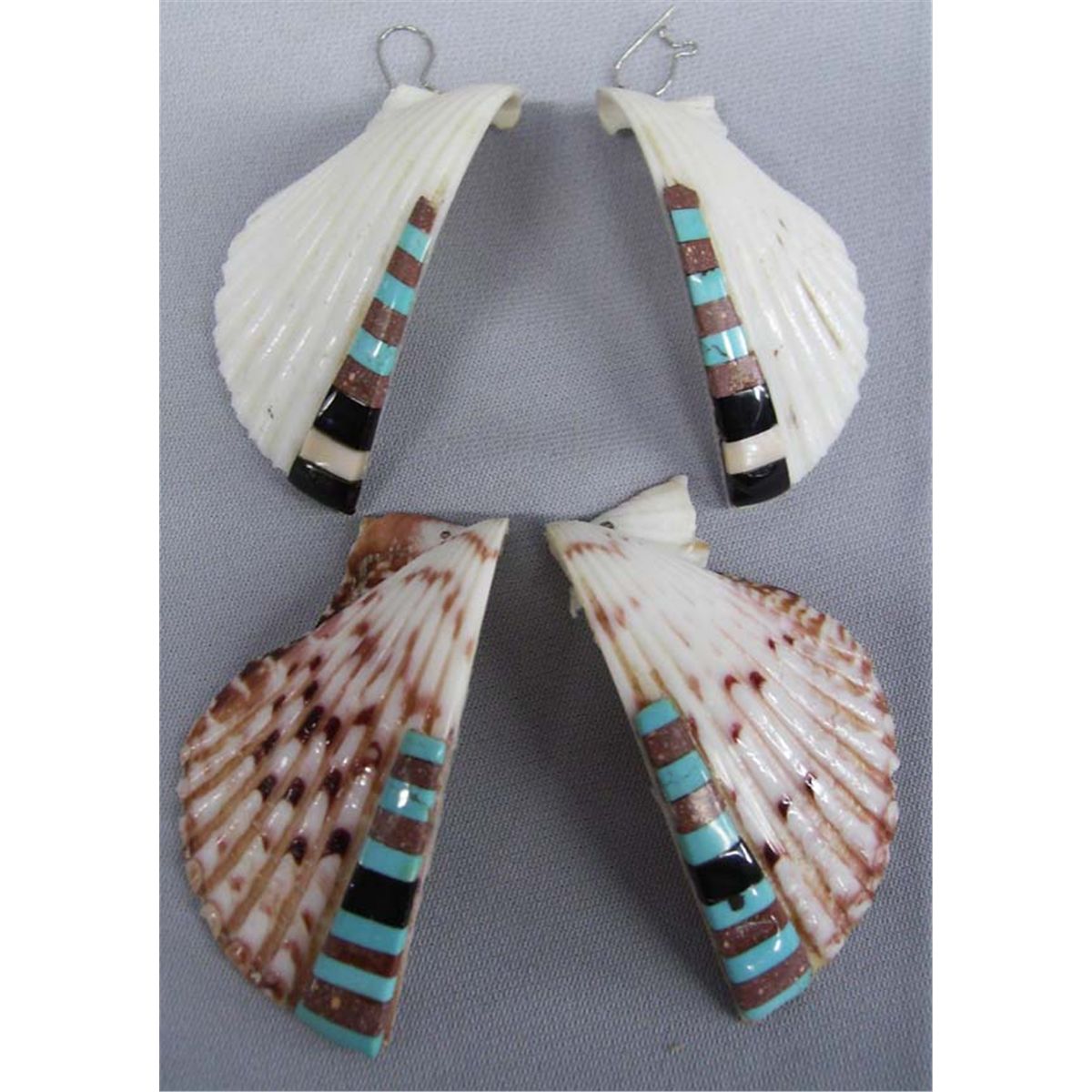 2 Pair Native American Santo Domingo Inlay Shell Earrings. Largest measures approx. 2 1/2''L. Buyers Pay Actual Shipping and Handling Charges(see terms and conditions for more information).