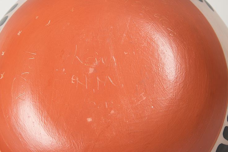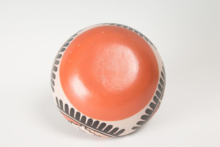 Santo Domingo Jar by Robert Tenorio . 7" x 9". Polychrome designs. Signed Robert Tenorio, Kewa, NM 2012.