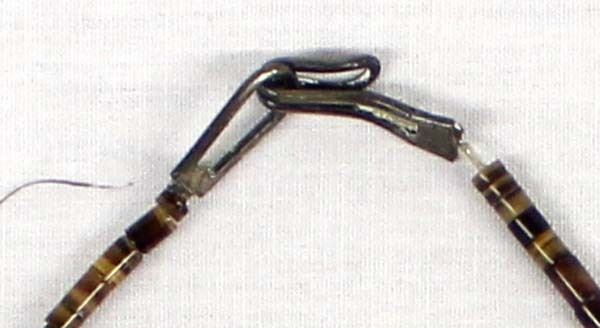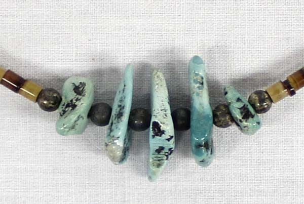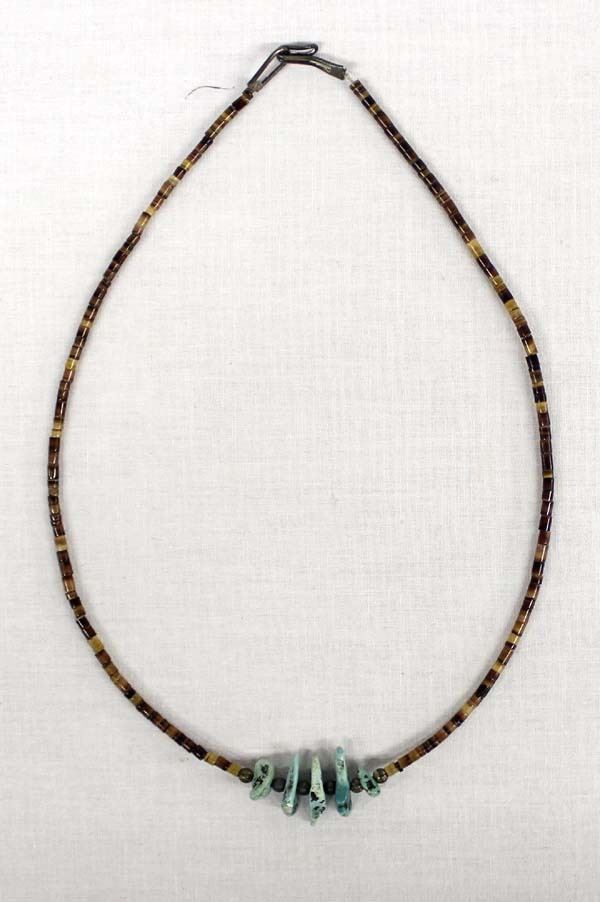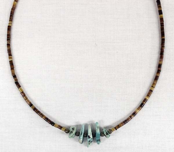 Native American Santo Domingo Pen Shell Heishi & Turquoise Nugget Choker Necklace, measures 14''L end to end, silver clasp