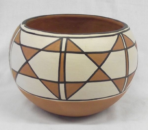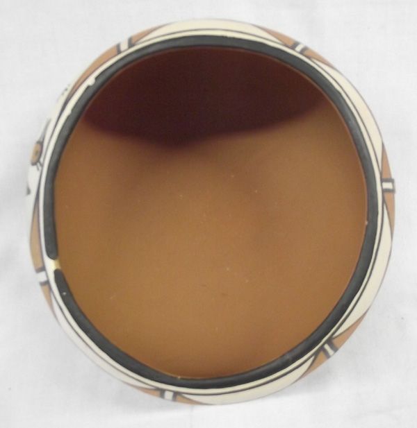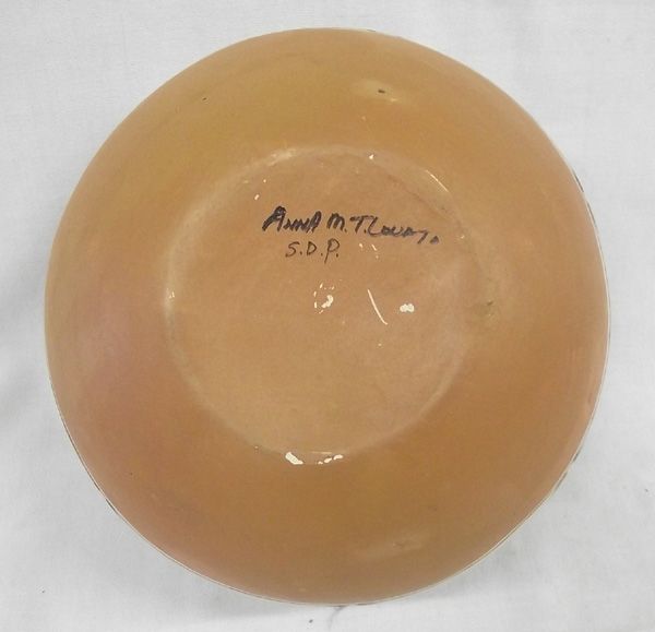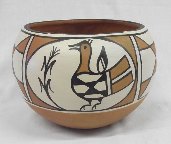 Santo Domingo Polychrome Zia Bird Pottery by Anna Marie T. Lavato, measures approx. 6''H x 9.5''W. Couple of nips on rim of bowl