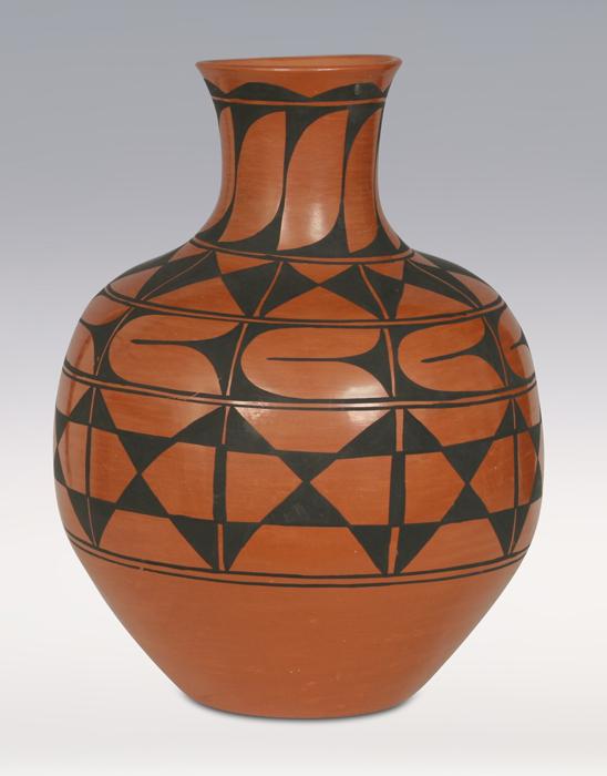 Santo Domingo Pot. 18 1/2" x 12 1/2". Made by Vidal Aguilar (b. 1972). Late 20th century. Condition Report: One or two minor scrapes, generally in excellent condition.