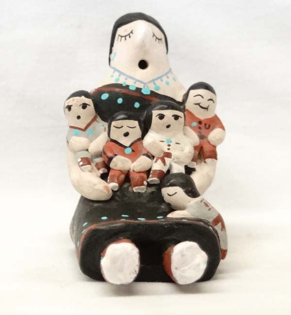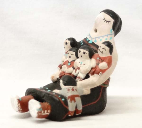 Native American Santo Domingo Pottery Storyteller by Gary Tenorio (1957-present), signed by artist, measures 3'' x 4'' x 2''
