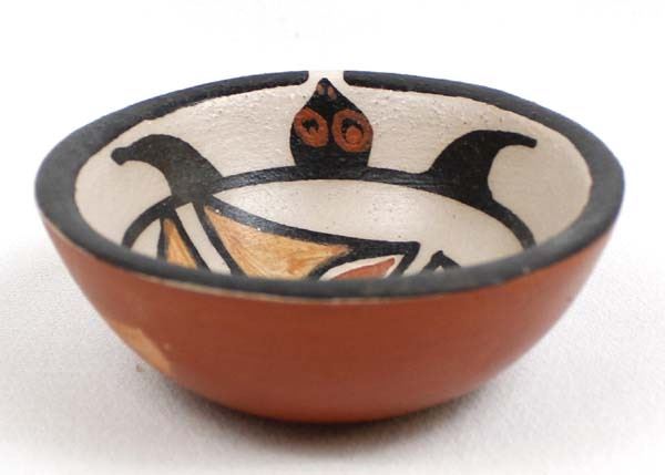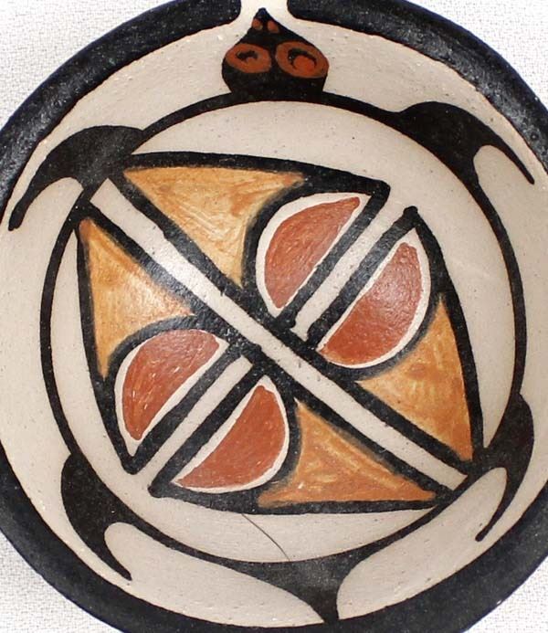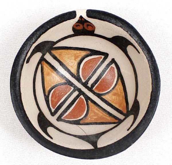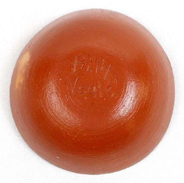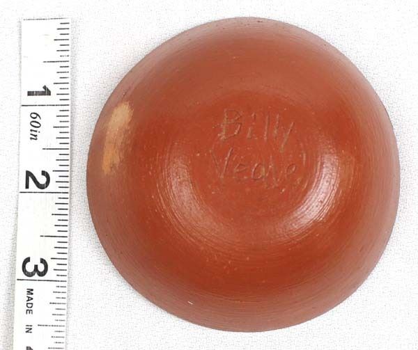 Native American Santo Domingo Pottery Turtle Bowl by Billy Veale, measures 3.5''D x 1.25''H and is signed on the bottom, 7/8'' x .5'' scuffed aread on side