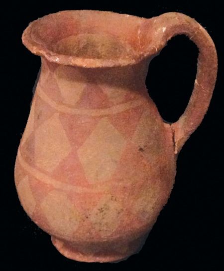 Ca. 1900s, Early Santo Domingo pottery pitcher with faint design. 5-1/2" x 4"