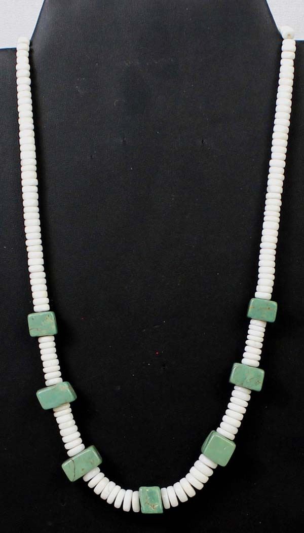 Native American Santo Domingo Shell Heishi and Turquoise Necklace, measures 20''L end to end, largest turquoise bead measures 3/8'' x .25''
