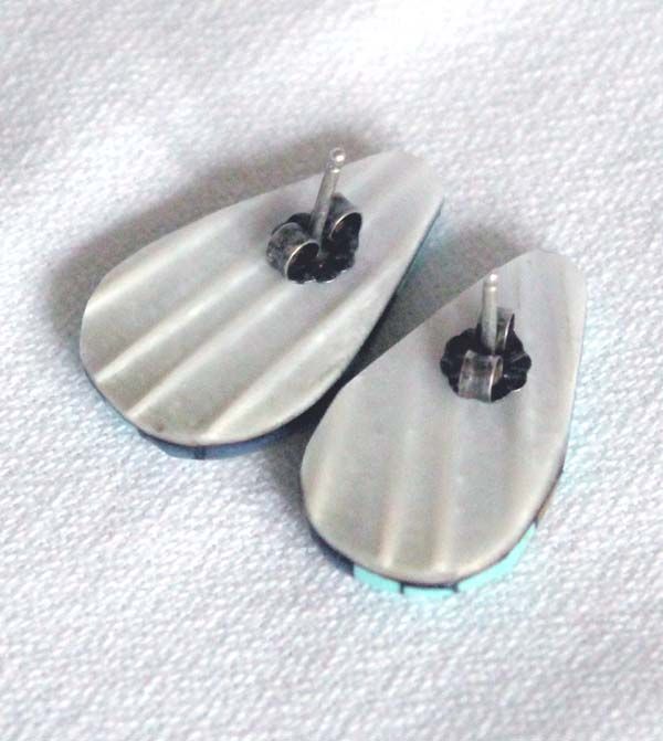 Santo Domingo Shell Mosaic Inlay Earrings by the Reano Family of Santo Domingo Pueblo (Kewa), measure 1'' x .5'', gorgeous stone to stone inlay of turquoise, jet, mother of pearl, abalone, and yellow mother of pearl, classy earrings