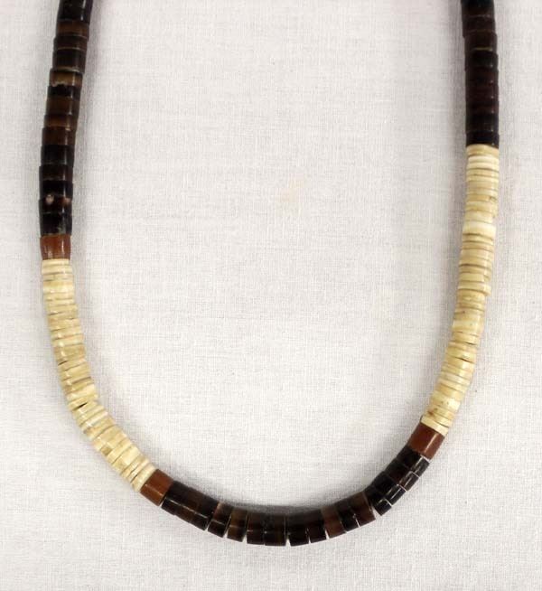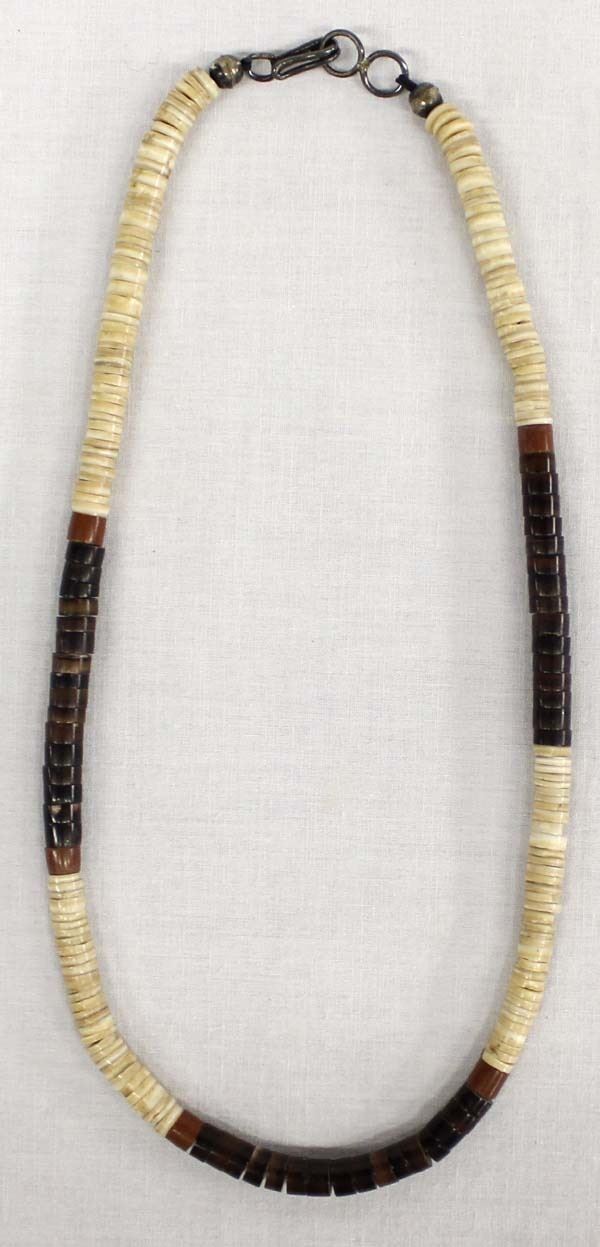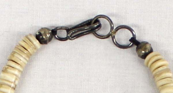 Native American Santo Domingo Shell and Pipestone Heishi Necklace, measures 15''L end to end, 2 sterling silver hollow bead accents, sterling clasp