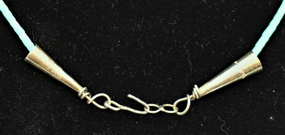 Native American Santo Domingo Sterling Multi-Stone Bird Fetish Necklace, features beautiful turquoise heishi and multi-stone bird fetishes, measures 24''L end to end with sterling cones, hand made clasp, longest bird measures 1''L
