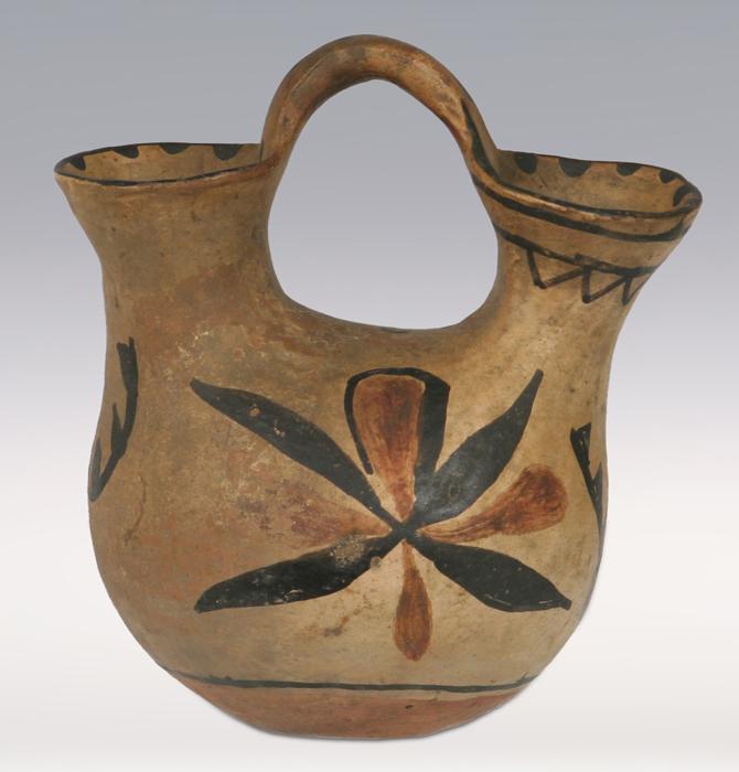 Santo Domingo Vase. 8" x 7 1/4". 19th century. Condition Report: Shows scratching and flaking from use and age. Generally in sound condition.