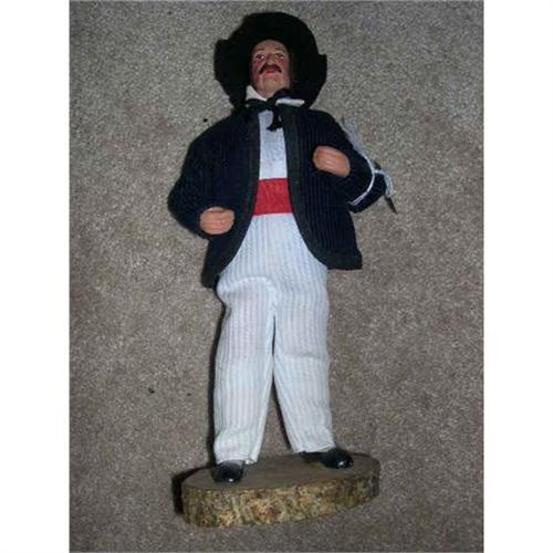 This is a French Santon Man. The base is marked Made in France. On the base he is 9 3/4" tall. He is all original. His arms are on a wire so when one moves so does the other. The material is some type of pottery, clay mixture. He has nice facial paint. He is from a smoke free environment. Buyer to pay $15 for shipping, insurance and handling. Thanks for viewing.