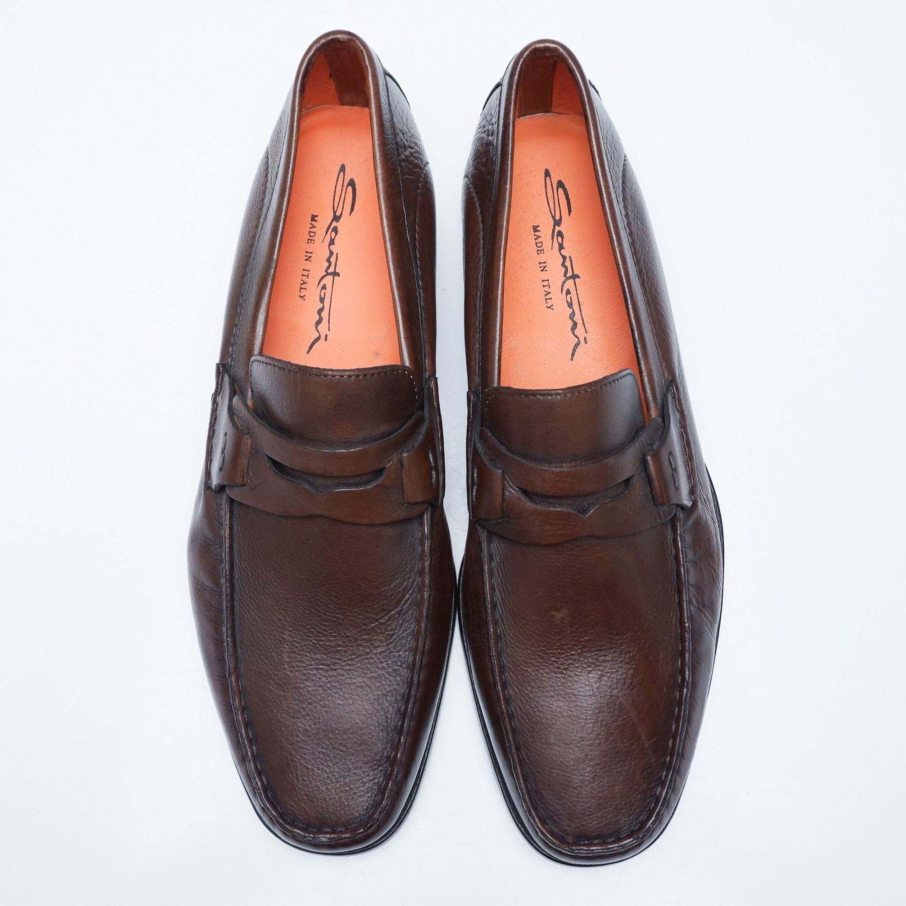 Santoni Men's Leather Penny Loafer, Brown, Size 7.5M