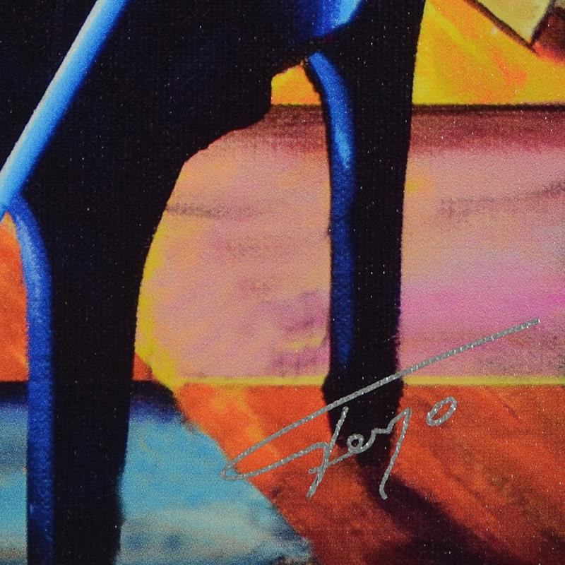 "Santorini at Dusk" is a limited edition giclee on canvas numbered and bearing Ferjos authorized signature. This piece comes gallery wrapped. Includes Letter of Authenticity. Measures approx. 24" x 16" (image). This item requires special handling and may have a longer than usual turnaround.