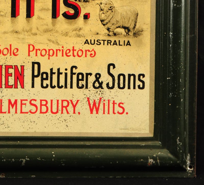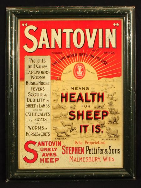 Santovin Tin Sign Stephen Pettifer And Sons Malmesbury, Wilts. Measures 20"x27"