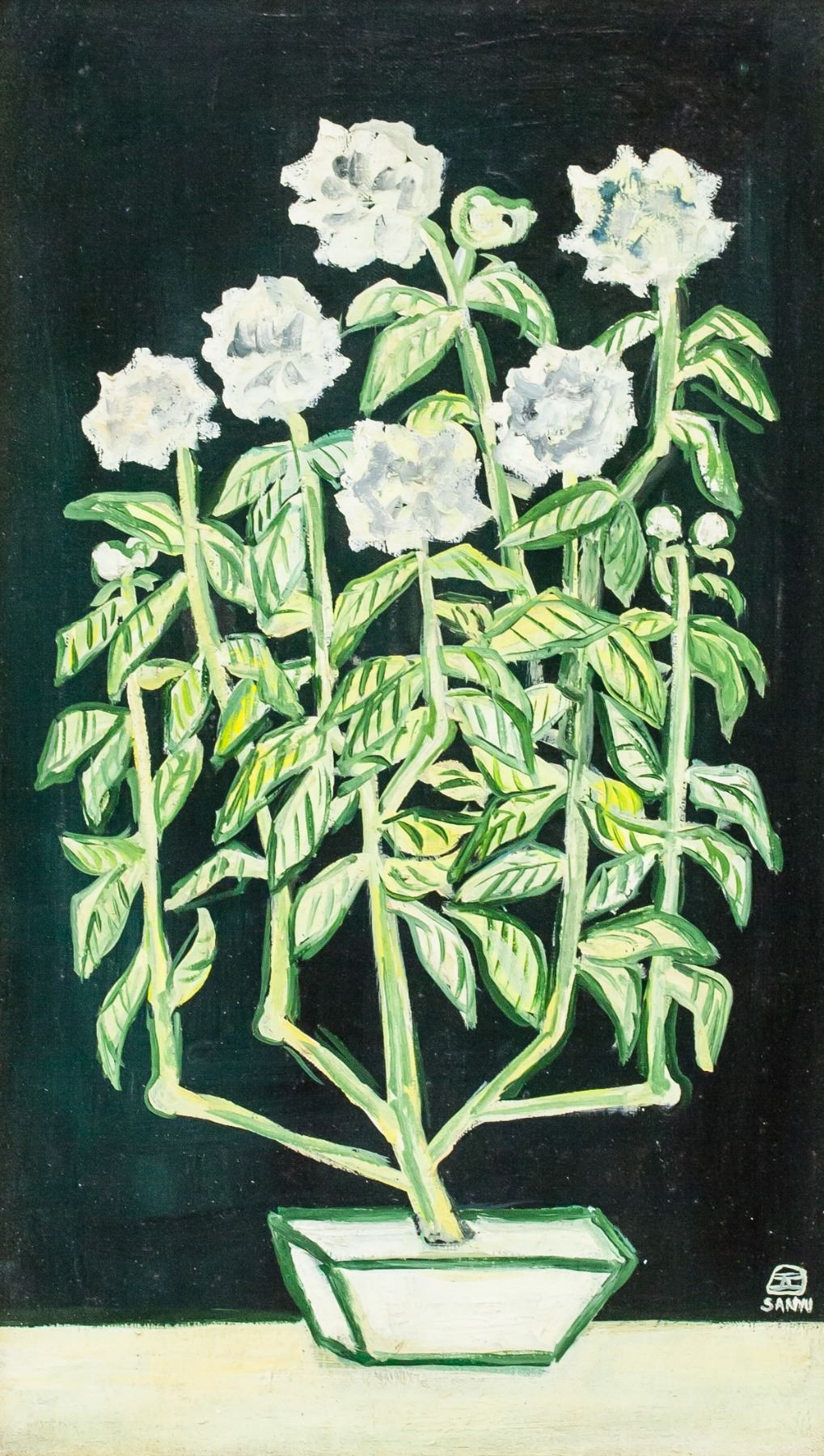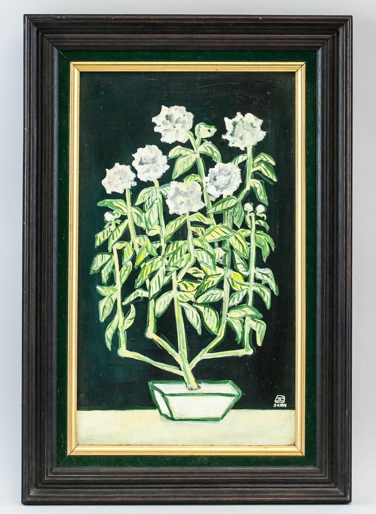 Oil on canvas, framed. Featuring a still life of flowers. Signed SANYU on the lower right corner. Attributed to Sanyu (1895-1966, Chinese-French). Canvas size: 51 x 30 cm (20 x 12 inches). Frame size: 63 x 42 cm (24.5 x 17 inches). Provenance: This lot carries limited provenance from a Toronto estate