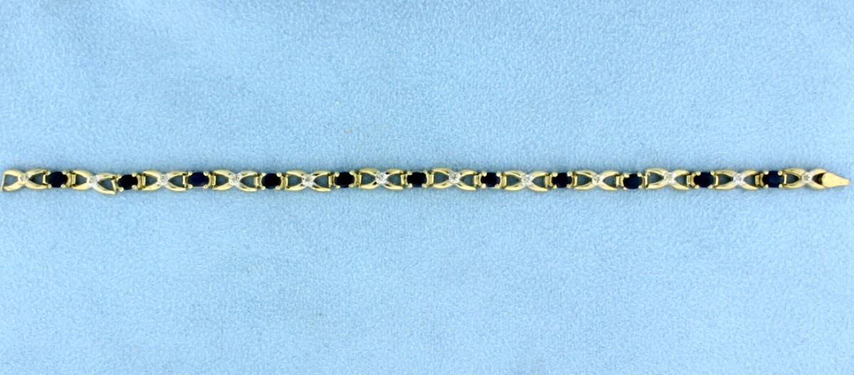 Lovely 10k yellow gold Sapphire and Diamond Bracelet with 1.50 carats of Sapphire and 12 diamonds that total 0.08 carats. The bracelet measures 6 3/4" long. 6.4g