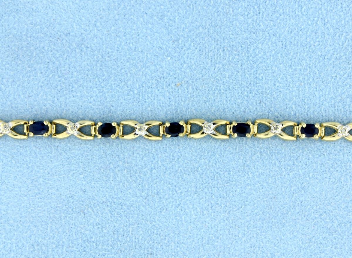 Lovely 10k yellow gold Sapphire and Diamond Bracelet with 1.50 carats of Sapphire and 12 diamonds that total 0.08 carats. The bracelet measures 6 3/4" long. 6.4g