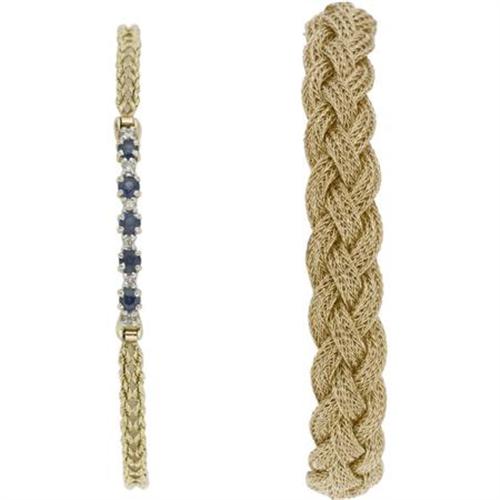 <B>Sapphire, Diamond, Gold Bracelet Lot</B></I><BR><BR>The lot includes: one bracelet featuring round-cut sapphires weighing a total of approximately 0.65 carat, enhanced by full-cut diamonds, stationed by two 14k yellow gold rope chains <I>(Length: 7 inches)</B></I>; together with one bracelet, enhanced by 14k yellow gold foxtail chain braided together <I>(Length: 7-1/4 inches)</B></I> . Gross weight for the lot is 19.10 grams. <B>Condition Report:</B> Good condition.<BR><BR><b>Shipping:</b> Miscellaneous Collectibles, Smal (<a target="_blank" href="http://www.heritageauctions.com/common/shipping.php">view shipping information</a>)