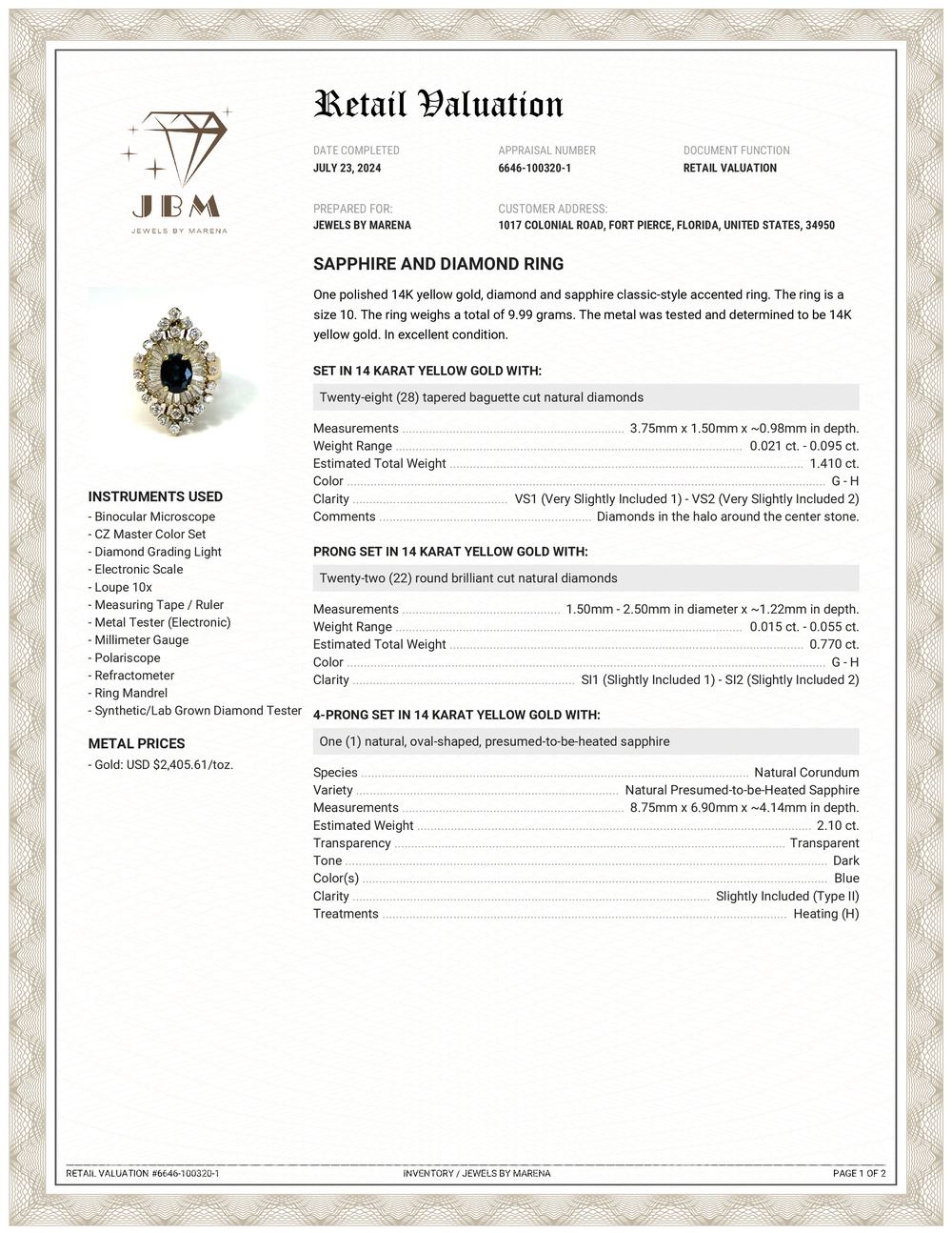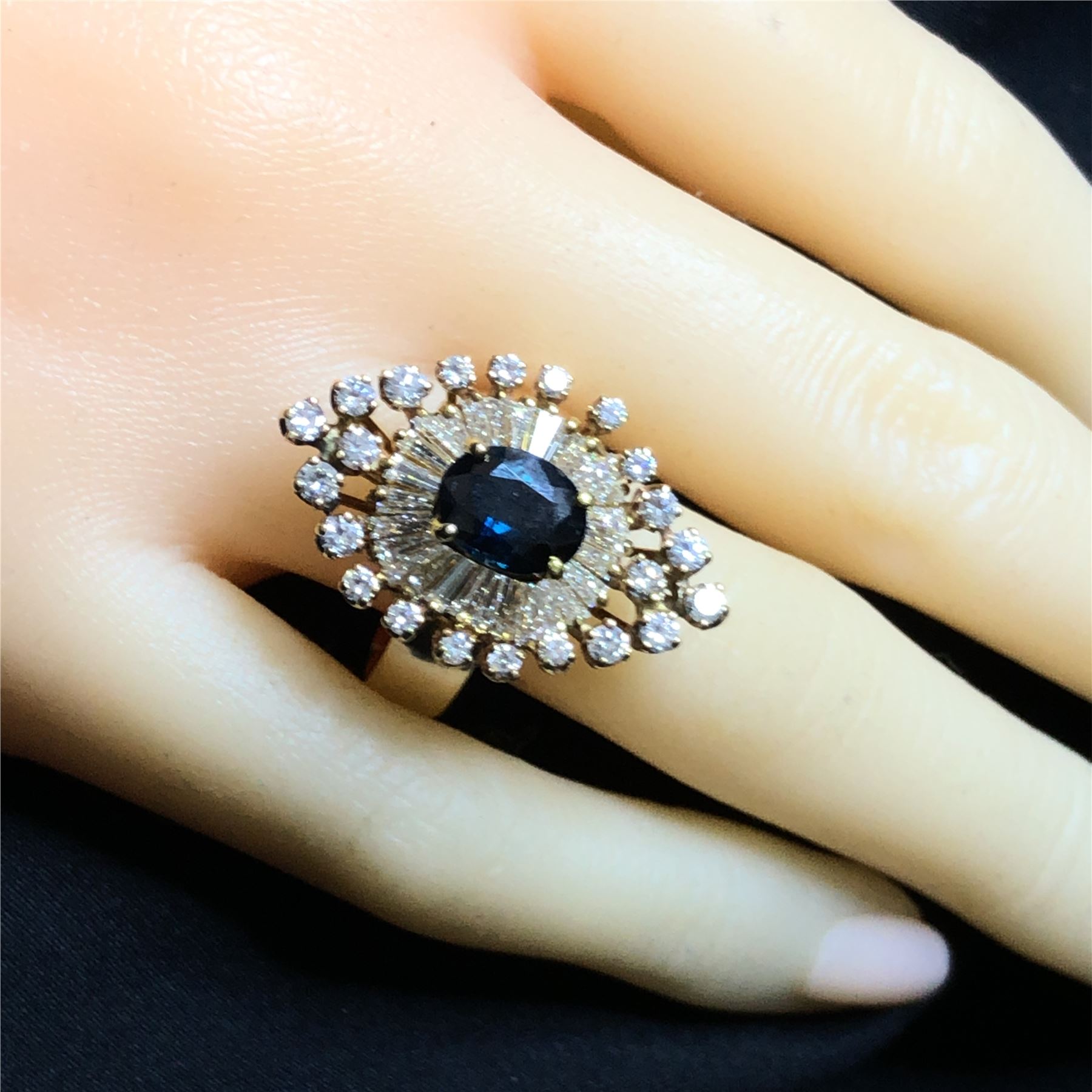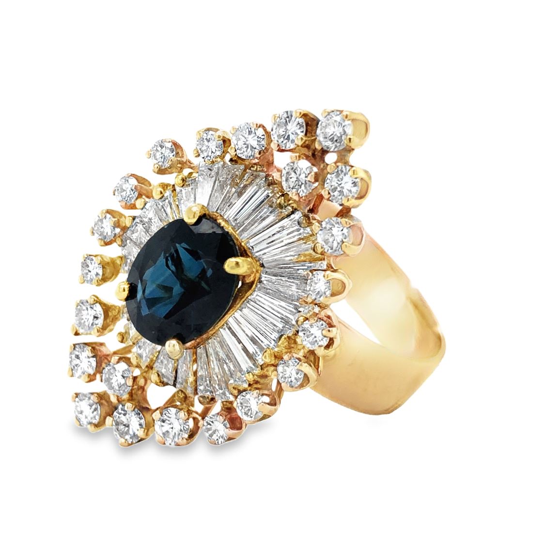 DESCRIPTION DETAIL: A gorgeous statement ring featuring an oval shaped Sapphire accented by an array of natural baguette and round brilliant cut Diamonds.& nbsp;
