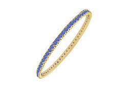 A fashionable circle eternity bangle surrounded with sparkling brilliant-cut round sapphires are beautifully 4-prong-set. Made in 14K yellow gold & has a total gem weight (TGW) of 5.00 carat. This gorgeous eternity bangle is made in USA and we can make this bangle exactly as per your wrist. Call us for free bangle sizer.