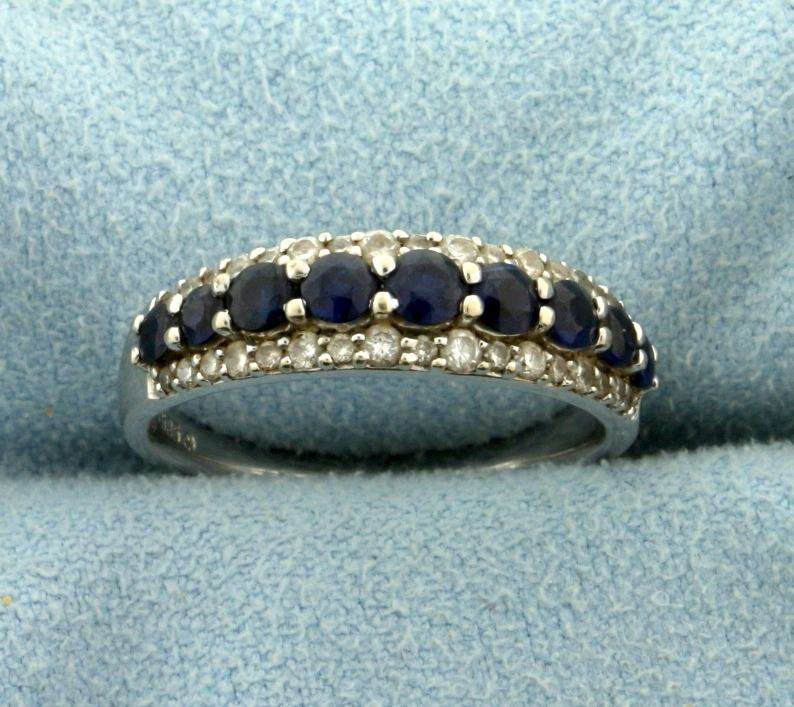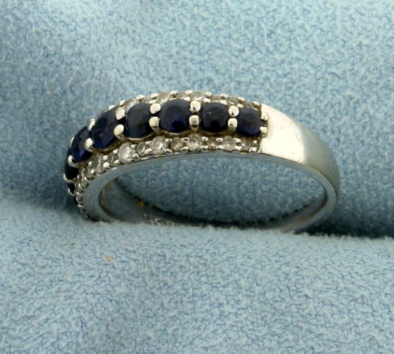 In 14k white gold, containing nine high quality sapphires ranging from 2.5-3mm each. Size 7. 3.7g.