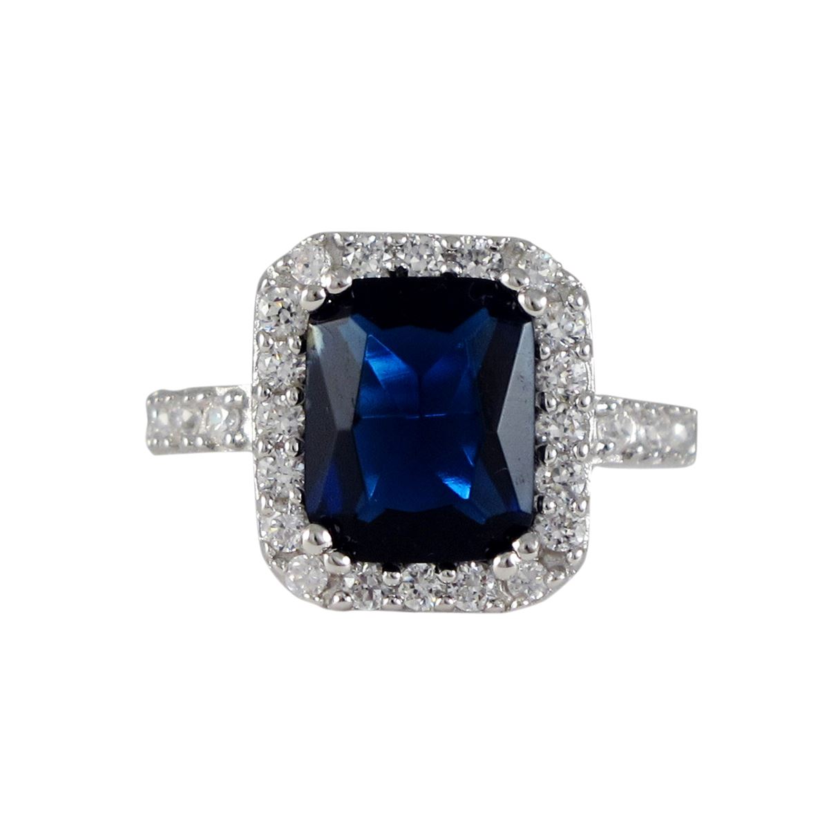 Sapphire Square CZ, Surrounded With White Czs, Sterling Silver Ring Size 6