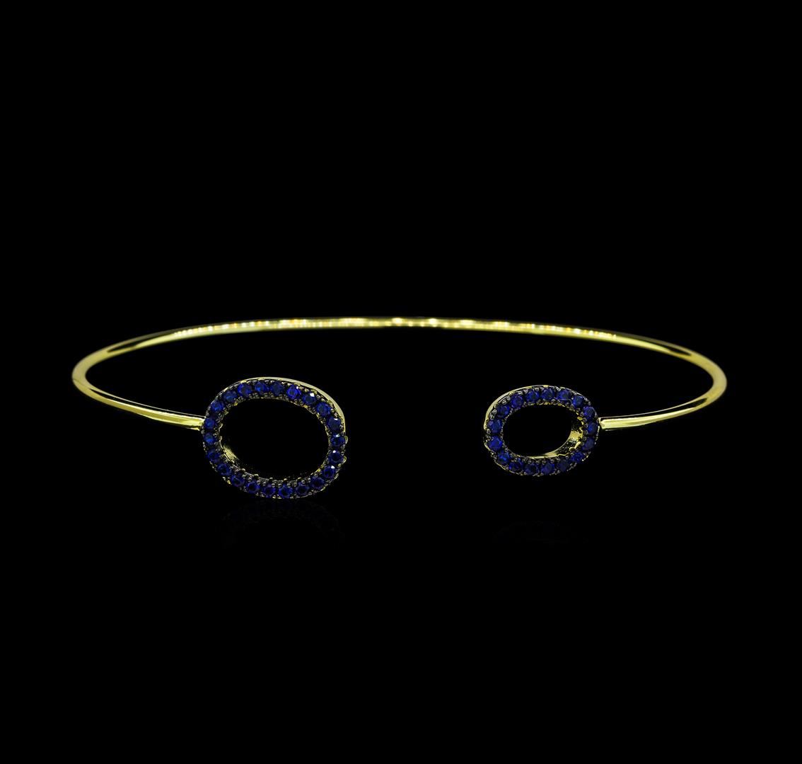 High end designer jewelry. Sapphire and CZ Double Oval Bangle Bracelet - Gold Plated. 14 K Gold Pltd- Silver925. Blue/ Gold. Adjustable. Total Weight: 5.8 grams.