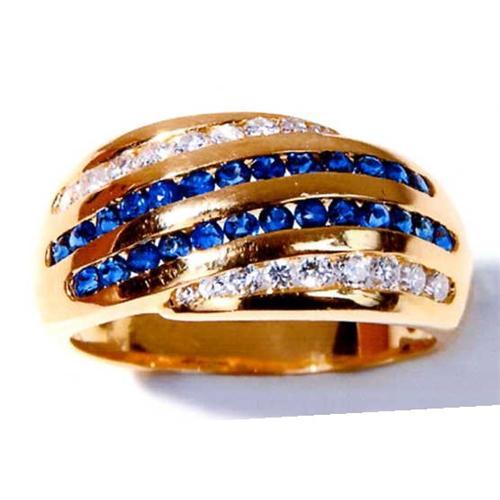 Size 7---Vivid blue, round, genuine sapphires and sparkling, round, genuine diamonds are channel set in this elegant 18kt. gold band. There are twenty-six .79ctw. sapphires and eighteen .39ctw. VS2-SI1 clarity diamonds.