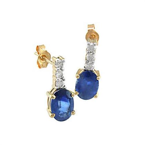 A nice petite pair of oval cut 2cwt Sapphire earrings with .25cwt of accent diamonds. The Sapphires are fine in color and clarity and the round cut diamonds are G in color and SI1 in clarity. They are set in 1.91 grams of 14KT gold.
